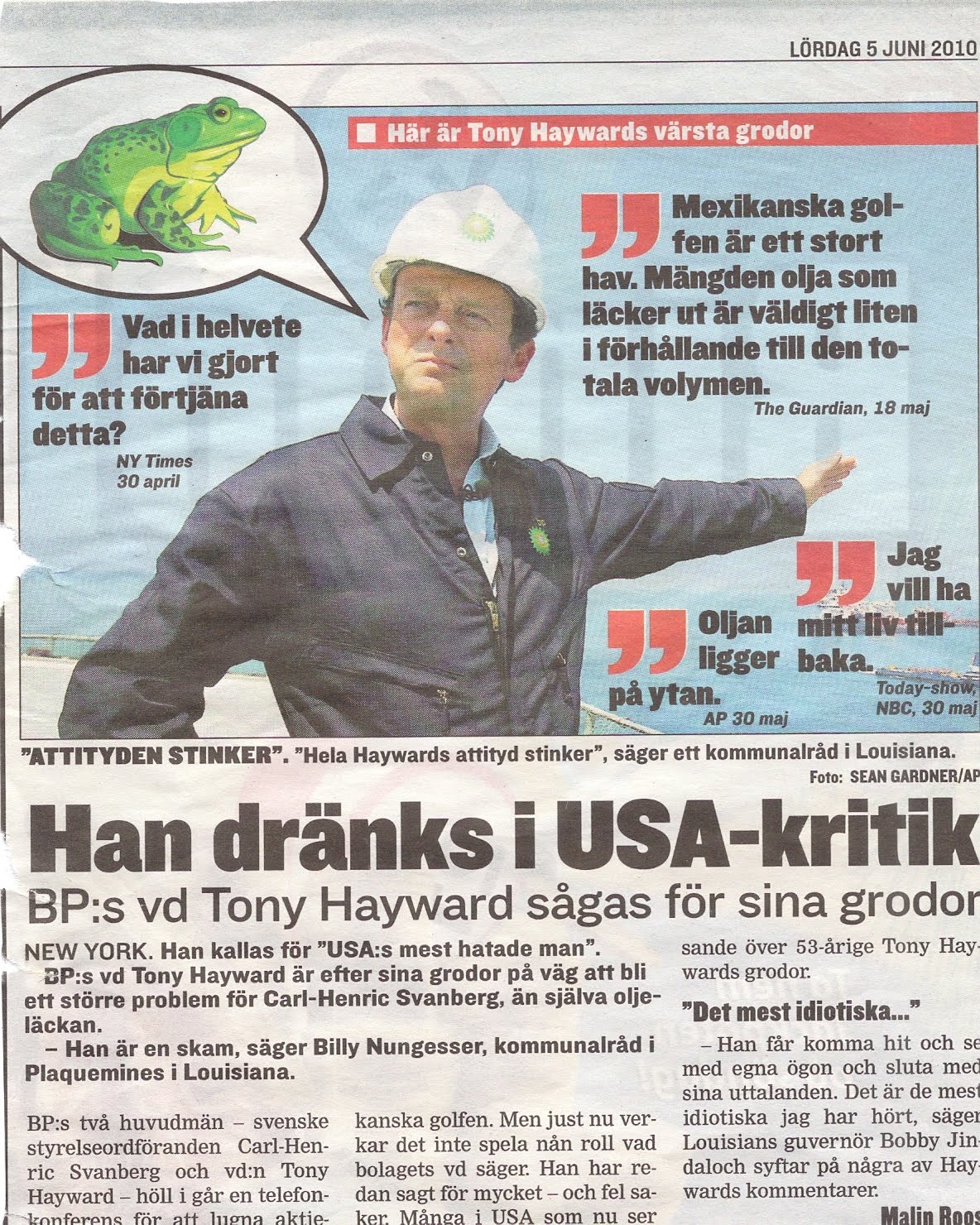 Ja, lille Tony här ska du få dig en historielektion och personligen hoppas jag BP går bankrutt, efter att BP betalat för alla skador som åsamkats djur, natur och människor!